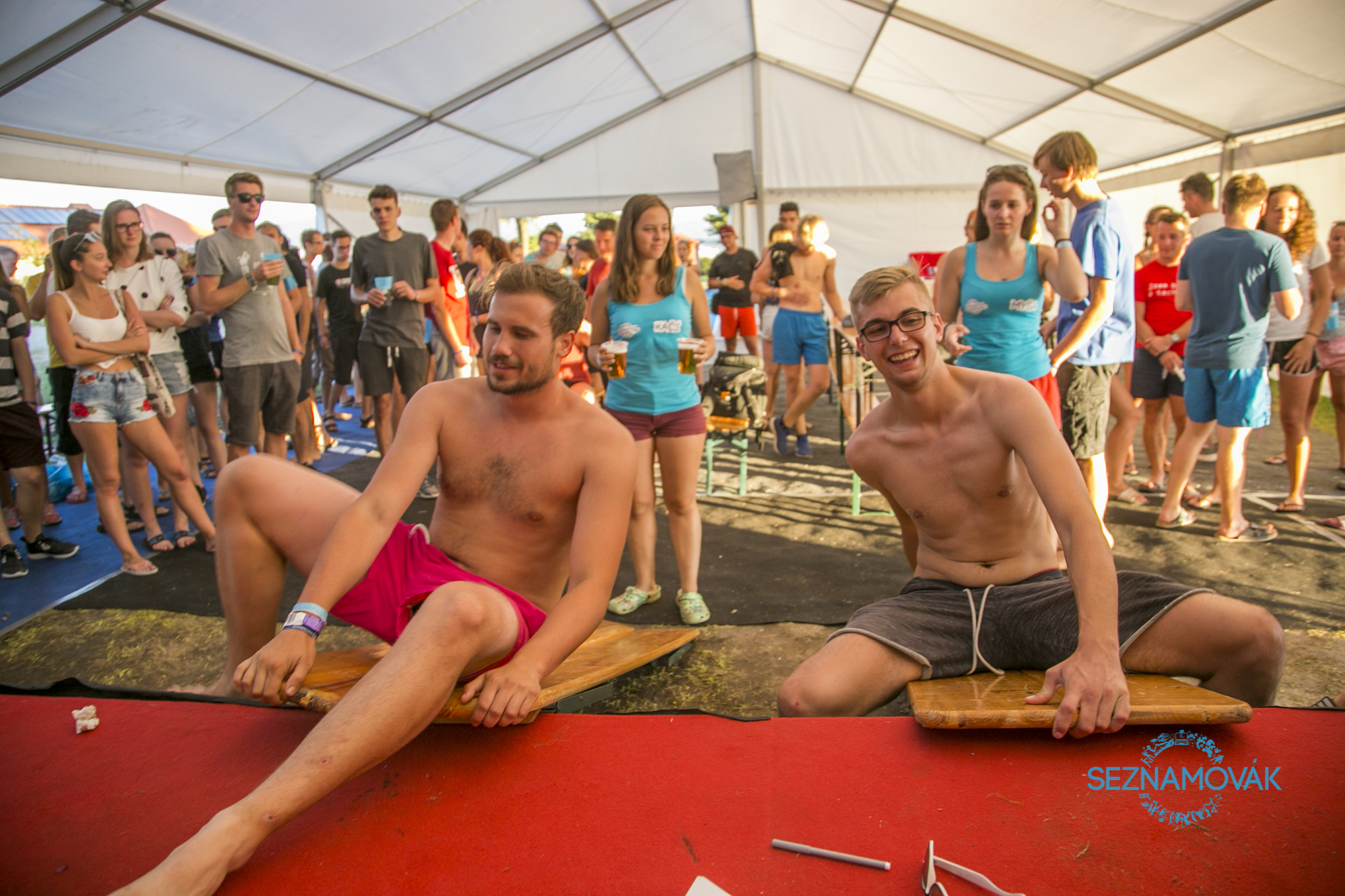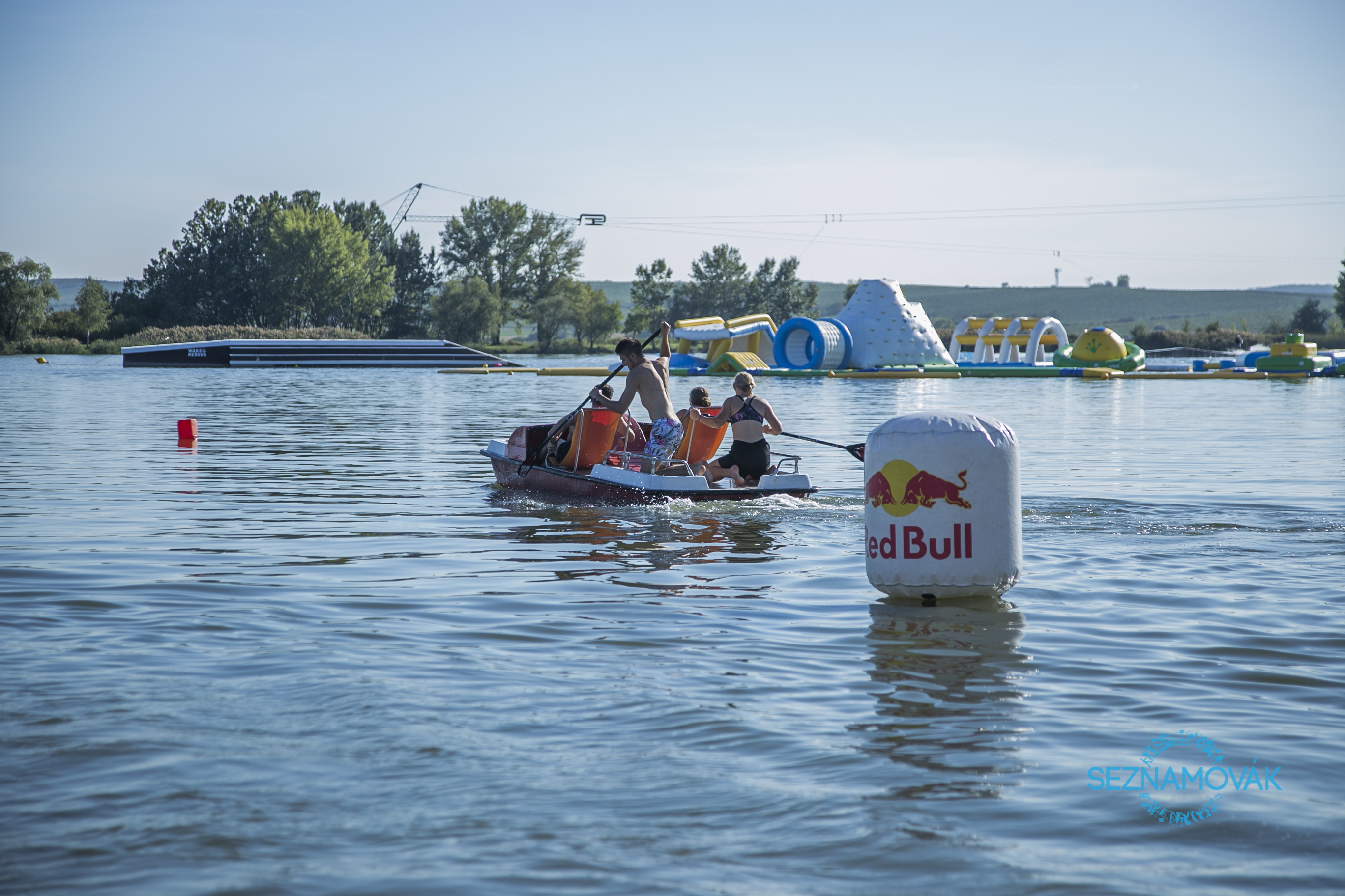 Letos si pro nás borci z Red Bullu připravili unikátní soutěž pro týmy účastníků, kteří rádi zkouší nové věci. Žene je společná motivace - v tomto případě výhra “Red Bull lodi” nebo si chtějí prostě zablbnout ve vodě. A jak to vlastně probíhá? Připravit! Pozor! START! Dva týmy s rozběhem skáčou na šlapadla, šlapou a pádlují o sto šest, zběsile kličkují mezi překážkami, u bojky si prohodí místa a valí zpátky. Energii do žil jim vlévají pokřiky těch, kteří tuto zábavu sledují ze břehu a fandí svým favoritům. Možná to zní šíleně, ale dokud nezažiješ, nepochopíš. Ostatně jako vše na Seznamováku :)