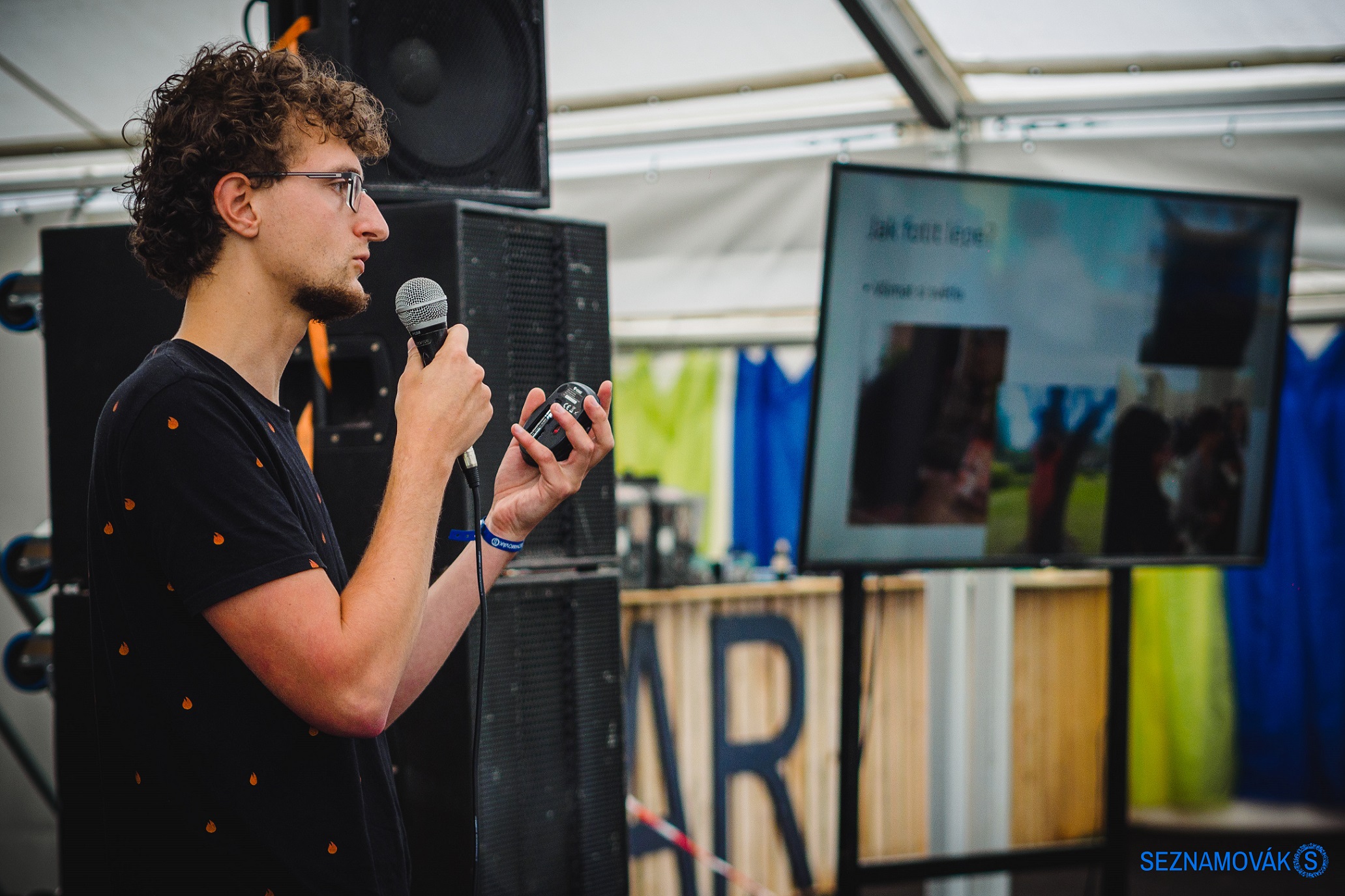 Pokud hledáš neopakovatelný zážitek, Slam Poetry je pro tebe to pravé! Aktuální texty, v podání Anatola Svahilce, Lefa L’Leviatana, Teodora Kravála nebo Vaška z Aše plné trefných a humorných narážek, doplněné hereckým provedením, by sis určitě neměl nechat ujít. Všichni slameři si okamžitě získali publikum, které se otřásalo ve vlnách smíchu a bouřlivého potlesku. Pro skutečné gurmány nechyběla ani improvizace a hudební vsuvky. Veselá atmosféra se vznášela nad celým stanem Seznamováku a určitě stojí za to to zažít.