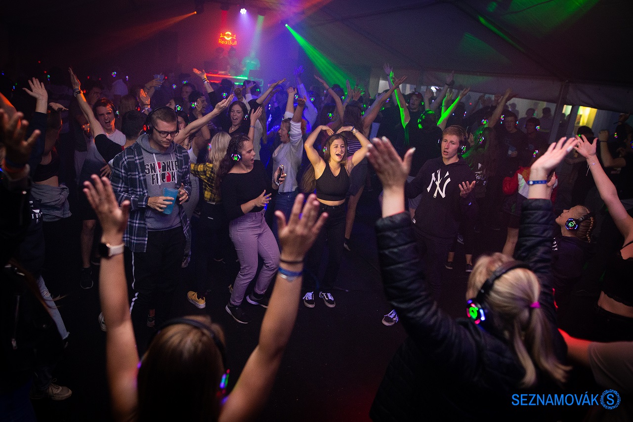 Nesnášíš překřikování na baru? Nebaví tě písnička, tak musíš čekat, až ji DJ přepne? Chceš něco říct kamarádům, ale oni tě neslyší? Takové problémy silent disco nezná. Nasaď sluchátka, vyber si ze dvou skladeb, tanči a zpívej! Představ si, že máte s kamarády každý jinou pecku v uších! Ty skáčeš do rytmu It’s My Life a oni se vrtí na Sladké mámení. Zkus si na chvíli sundat sluchátka a poslouchat známé úryvky právě hraných skladeb z plna hrdla tvých kamarádů!