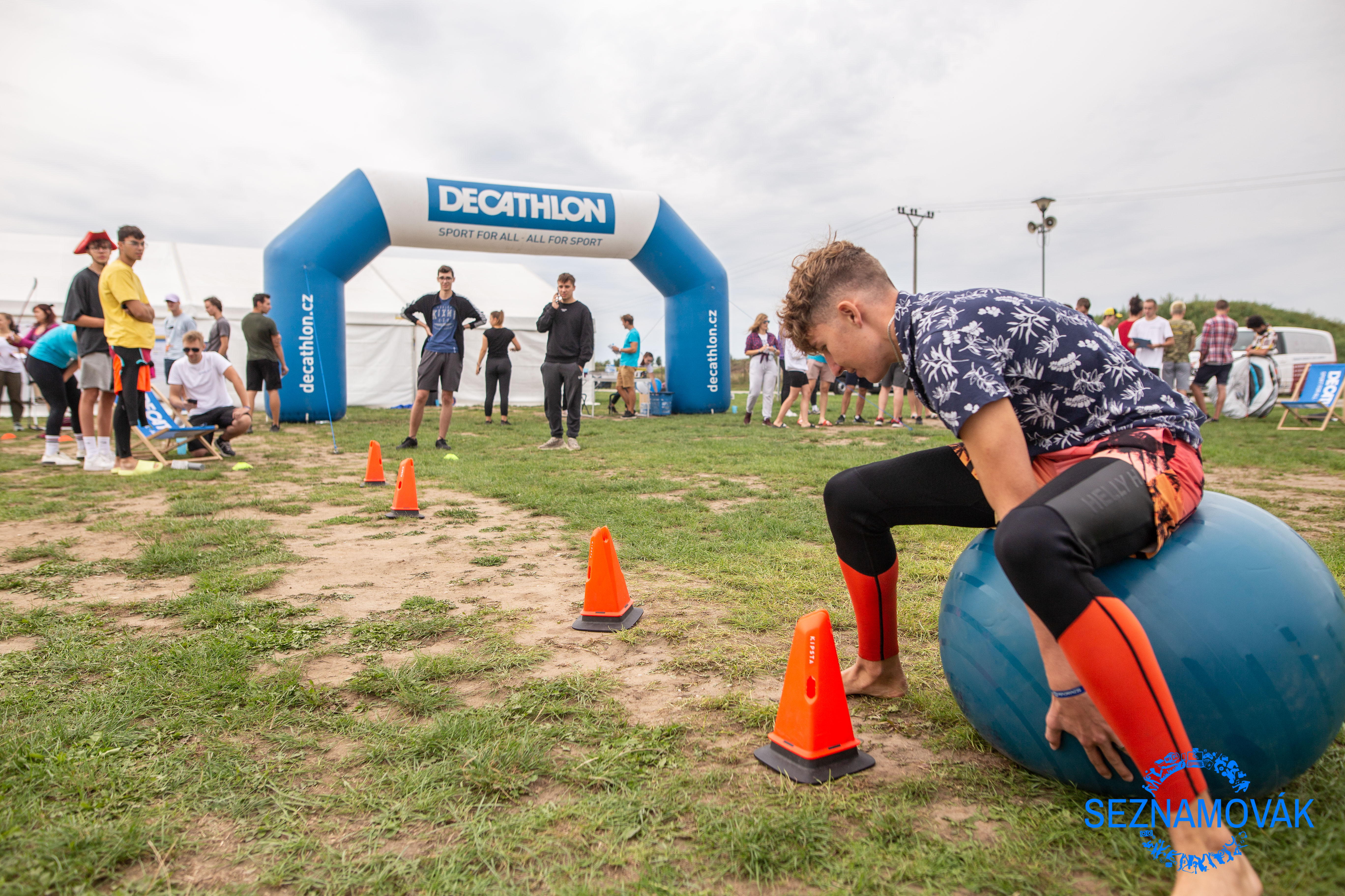 Ne každý z nás je vrcholový sportovec. I tak občas zabloudím do nějakých sportovních potřeb, díky čemuž mi název Decathlon nebyl vůbec cizí. Ale i v jejich obchodech je spousta různých potřeb na nespočet sportů, tak co všechno si přivezli na Seznamovák? Rozhodně něco, co by mě nenapadlo si doma vyzkoušet. Například bych nikdy neřekla, že se dá stan složit za 15 vteřin! Skákací míč jsme jako malý měl doma každý, takže závodit na nich by se zdálo jako ízy task. Ale rozhodně se víc padalo, než skákalo. Taky jsem si mohla vyzkoušet střílení na branku, kde jednotlivá okénka znamenaly body. No a florbalista ze mě rozhodně nebude. Naopak lukostřelec jsem docela nadějný. A ke všem sportovním zážitkům super hudba, tohle dopoledne patřilo rozhodně k jednomu z nejzábavnějších!