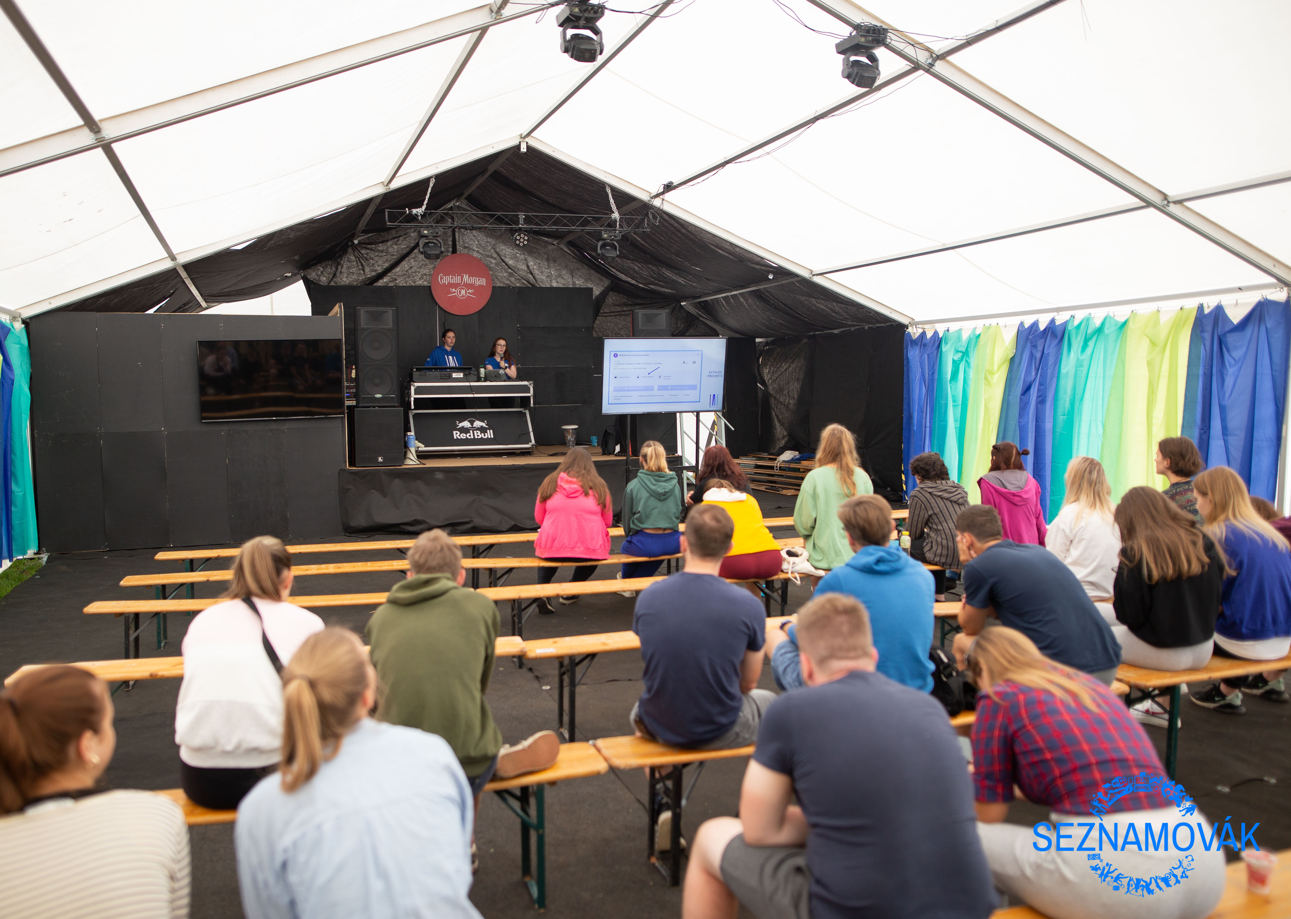 Spolkové odpoledne nám jasně ukázalo, že vysoká škola není jen o studiu. Studentské spolky a kluby studentskému životu dodávají úplně nový rozměr. Na univerzitách jich funguje přes 100, ale ty nejlepší se nám přijely představit už na Seznamovák. Před party stanem měl každý spolek postavený vlastní stánek, u kterého stály 2-3 zástupci. Kromě jednoduchého popisu aktivit, které provozují, a spoustu propagačních letáků, měla většina spolků taky připravené zajímavé hry a jeden rozdával dokonce i drink dle tajné spolkové receptury, kterou prý prozradí jen, pokud se k nim přidáš. Bylo super, že jsme měli možnost se do spolku zapsat přímo na místě a hned od začátku semestru se stát aktivním členem.