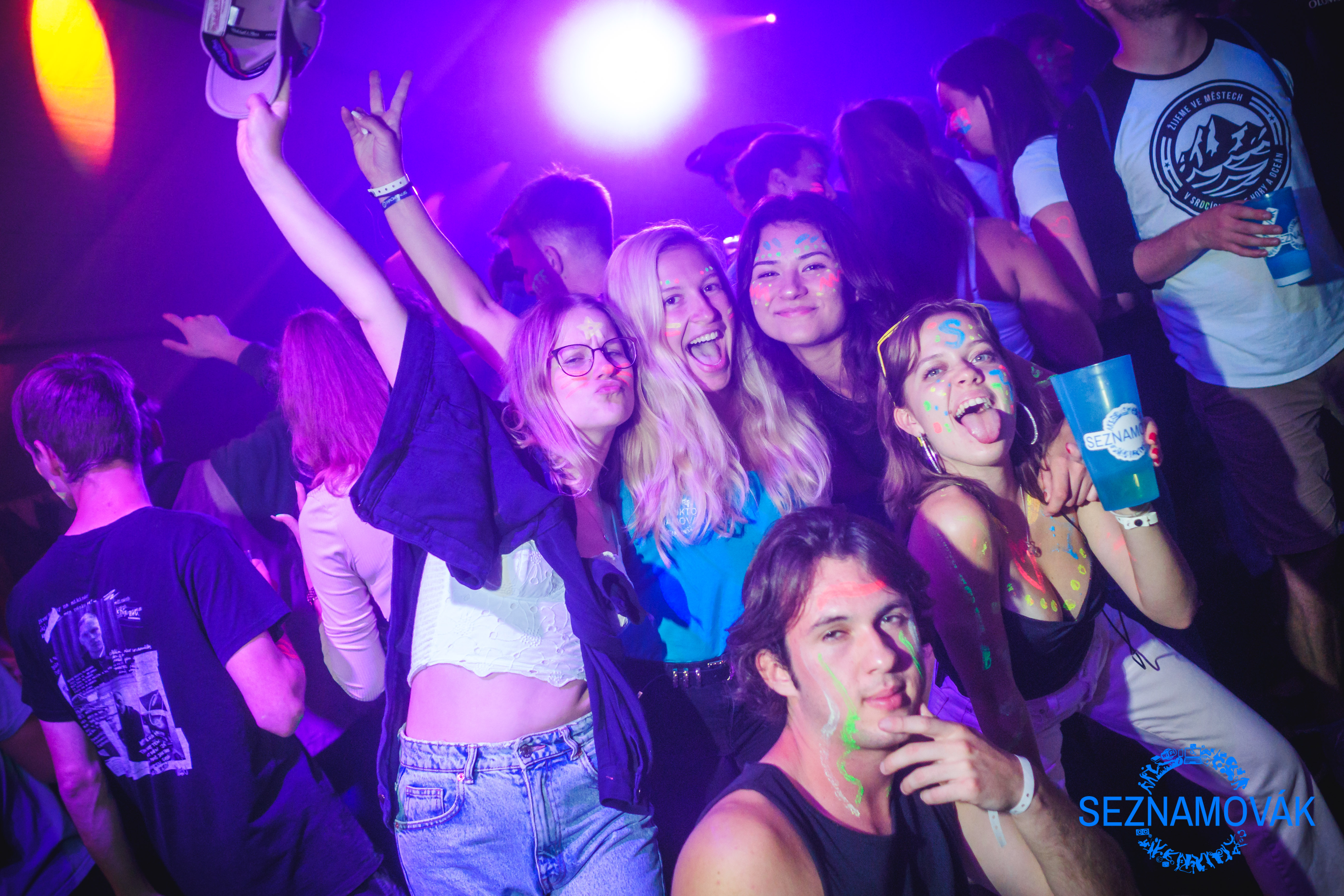 Svítící náramky všichni známe, ale Seznamovák posunul párty o jiný level a místo náramků zakomponoval UV barvy. Instruktoři využili své umělecké nadání a ozdobili nás všechny nejrůznějšími obrazci nebo nápisy o které byl zájem. Potom už jen stačilo si vychutnat pořádnou párty ve stanu se skvělou partou lidí a nadupanou muzikou. Je dobré si vzít všechno co potřebuješ s sebou, protože od tama se pak zpátky do chatky odchází těžko. 😎